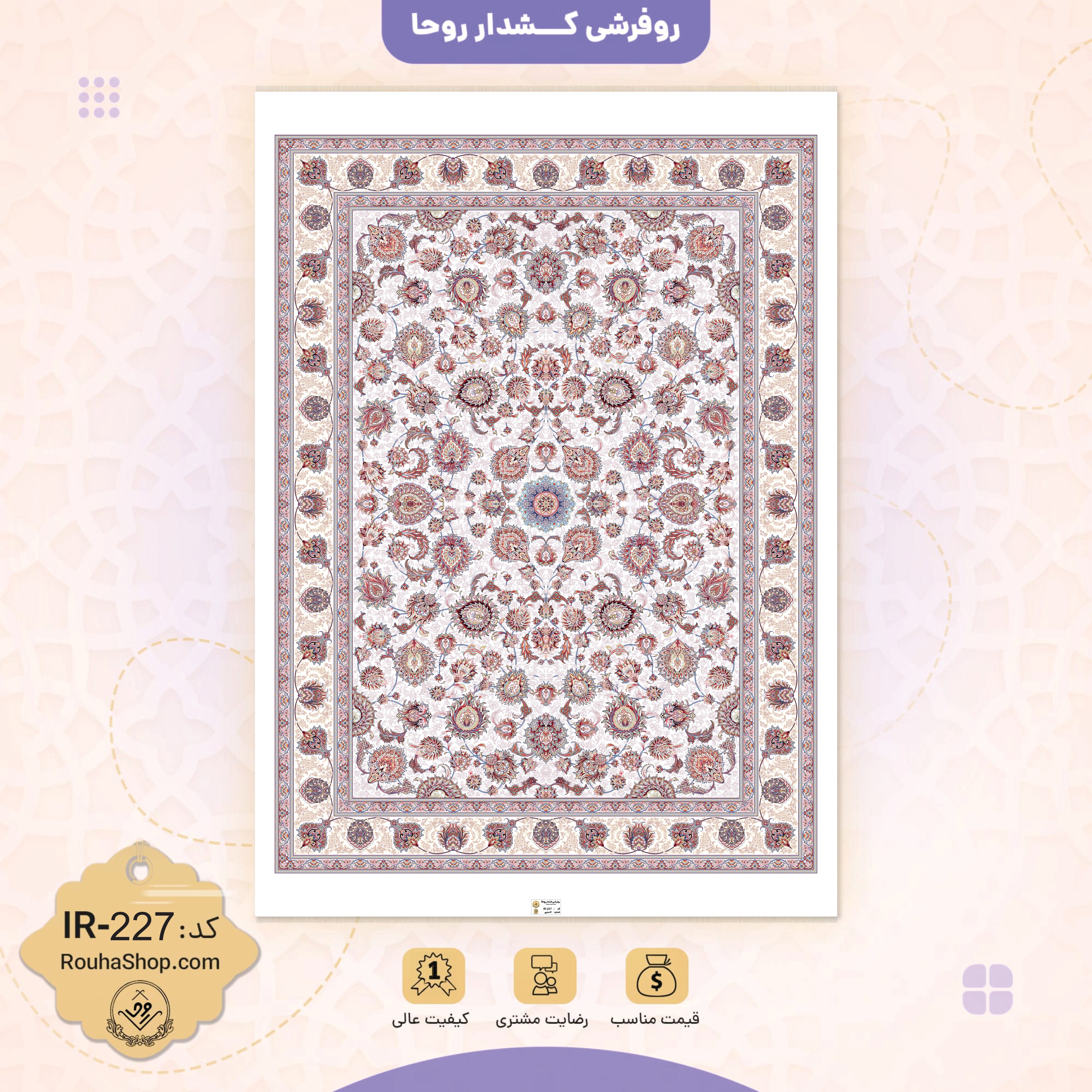 خرید روفرشی کشدار کد IR-227 روفرشی زیبا و نفیس از جنس پارچه مخمل شانل ، تولید شده توسط گروه تولیدی روحا. پارچه این روفرشی مانند دیگر محصولات روحا ، در شهر یزد و با استفاده از آخرین تکنولوژی های موجود دنیا، از نخ “شانل” بسیار متراکم و با مدرن ترین تکنولوژی ها تولید شده است. از آن جا که گروه تولیدی روحا در تولیدی روفرشی IR-227 و دیگر روفرشی ها از متریال اروپایی و بهترین نوع جوهر استفاده می کند ،نیازی نیست نگران رنگ پریدگی یا پس دادن رنگ این روفرشی ها باشید. اگر قصد خرید روفرشی کشدار طرح سنتی دارید خوب است بدانید روفرشی های روحا نسبت به نمونه های خارجی ضخامت بیشتری دارند.