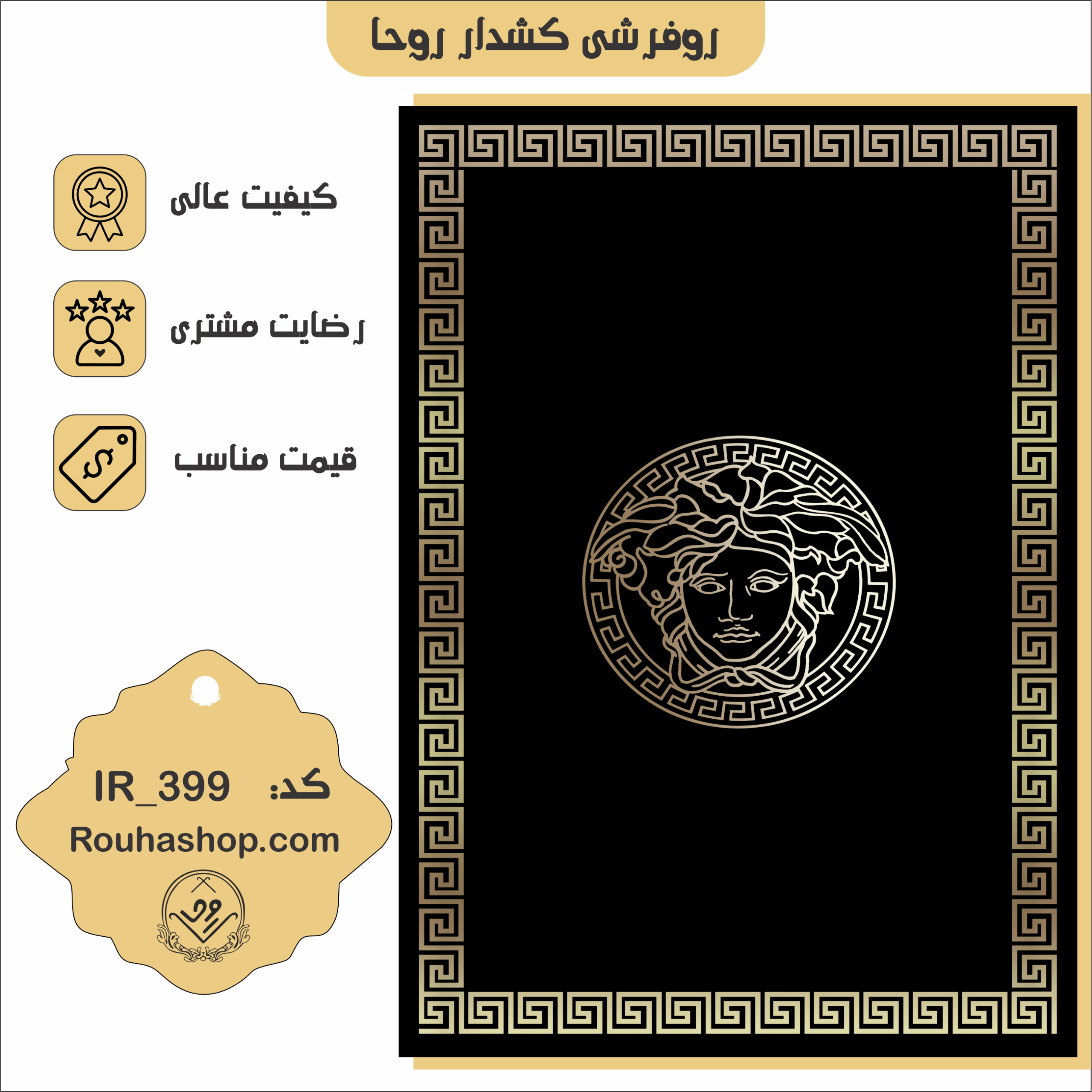 روفرشی کشدار روحا طرح ورساچ مشکی کد IR-399